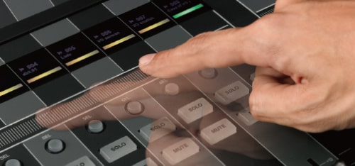 Now that everyone is thoroughly familiar with computer trackpads, the Nuage Touch Slider will be easy. Simply slide a finger along the horizontal Touch Slider strip to shift Nuendo channels left or right in relation to the Nuage Fader channel strips, use flick gestures to quickly shift a larger range of channels, or use the “Bank Flick” feature to flick channels in groups of eight. There are also customizable channel layouts that bring important channels to the surface with just one button press. Lock your stem or master busses to the surface to access them at any time.