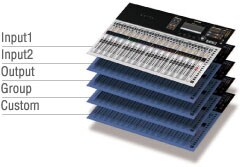 The TF5 has 33 motor faders, the TF3 has 25, and the TF1 has 17. All rear-panel inputs have individual faders so their status can be verified at a glance and they can be directly and immediately accessed for control.