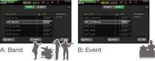The scene memory features banks A and B, each capable of holding up to 100 scenes. That’s a total of 200 scenes that can be set up and instantly recalled whenever needed. A number of scenes are pre-programmed to give users a head start: scenes with the 1-knob COMP and 1-knob EQ controls engaged for the easiest possible operation, and scenes with the 1-knob features disabled for experienced engineers who might want to follow an established procedure. The banks are great for organizing different types of scenes: one for scenes categorized by music type, and the other by event type, for example.