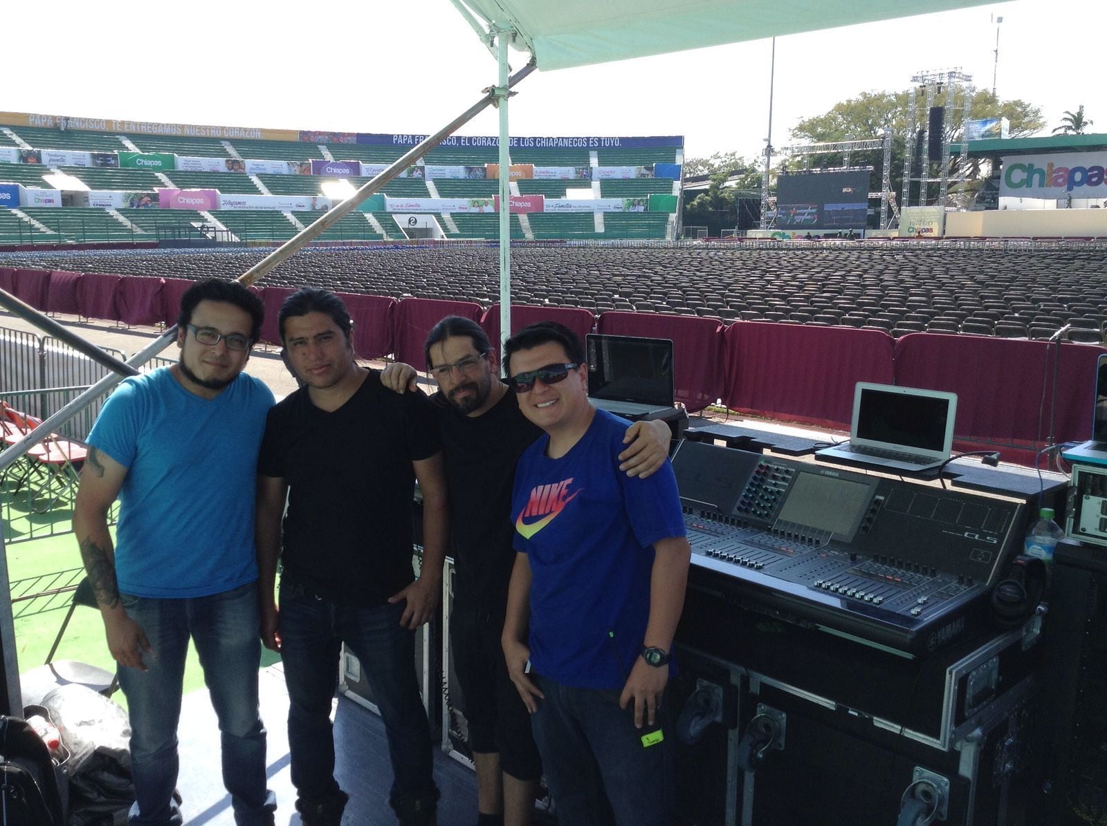 Pope Francis later visited Tuxtla Gutierrez and San Cristóbal de las Casas, the two major cities in the state of Chiapas. All events were supervised and produced by Grabiel Berumen and Miriam Villalobos, with coordination by Juan Manuel Avilés. A number of sound reinforcement companies such as Vatel, Troya Eventos, Mix Pro, and Elefante polar were responsible for handling the audio and supplying equipment that included Yamaha RIVAGE PM10, PM5D-RH, CL5, and CL3 digital mixing consoles. Four CL consoles were used at the Jaguares Stadium in Tuxtla Gutierrez to reach more than 110,000 attendees. The RIVAGE PM10 was tested in challenging, extremely dusty outdoor conditions in San Cristóbal de las Casas, with temperatures ranging from 5° to 24°C and humidity as high as 100%. The massive San Cristóbal de las Casas event attracted a crowd of more than 100,000, and made full use of 104 input channels to handle mariachi players, orchestra, and chorus. Advanced audio tools such as Rupert Neve SILK processing and Dan Dugan automated mixing also contributed to the outstanding sound achieved.