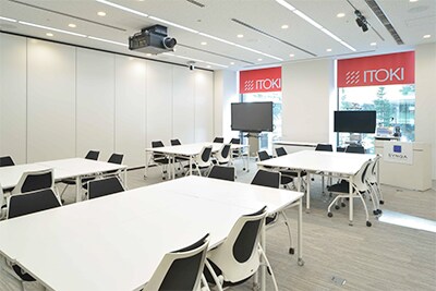 Dziękuję Ci bardzo! TEAM LAB zapewnia miejsca spotkań, w których można wymieniać się pomysłami z zewnętrznymi gośćmi, ale działa również jako sala wystawowa, w której rozwiązania ITOKI są wyświetlane w operacyjnych, rzeczywistych formach.