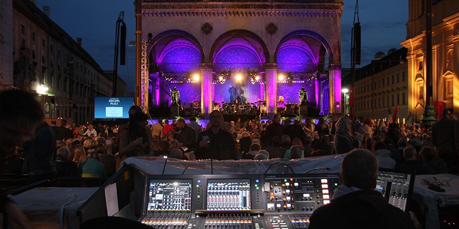 For two evenings every year, Munich’s central Odeonsplatz swaps its usual traffic and pedestrians for a sold-out, 16000-strong audience enjoying a major classical concert. 2017 marked the first time that a Yamaha RIVAGE PM10 digital mixing system was used on one of the city’s most prestigious events.