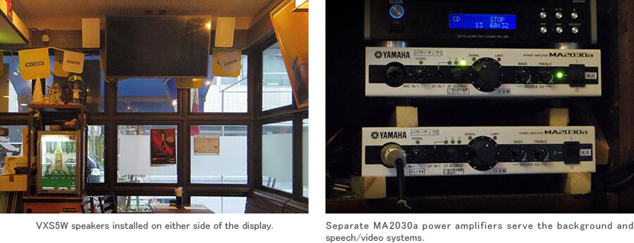 There was no space for speakers in my first 27-square-meter restaurant, so after moving to a bigger place I wanted to install a proper sound system. There were speakers left over by the previous tenant when I moved in, and I used those for a while, but they were simply too big and I planned to replace them as soon as I could. Another problem was that customers sometimes reserve the restaurant for gatherings and bring their own music, but the existing speakers were too boomy at normal levels and sounded muffled when turned down. The quality was not good enough. Then I found out about Yamaha’s compact speakers.
