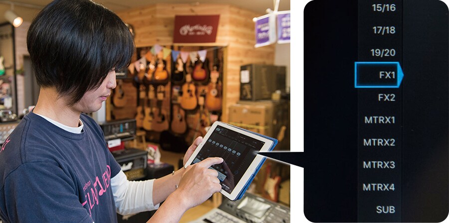 “The TF StageMix is really easy to use, even for a beginner digital mixer like me. Let’s say I want to add a reverb to a certain channel. What I need to do is to select “FX1” or “FX2” from the column in the right of the screen, set the fader as send mode, and to raise the target channel.