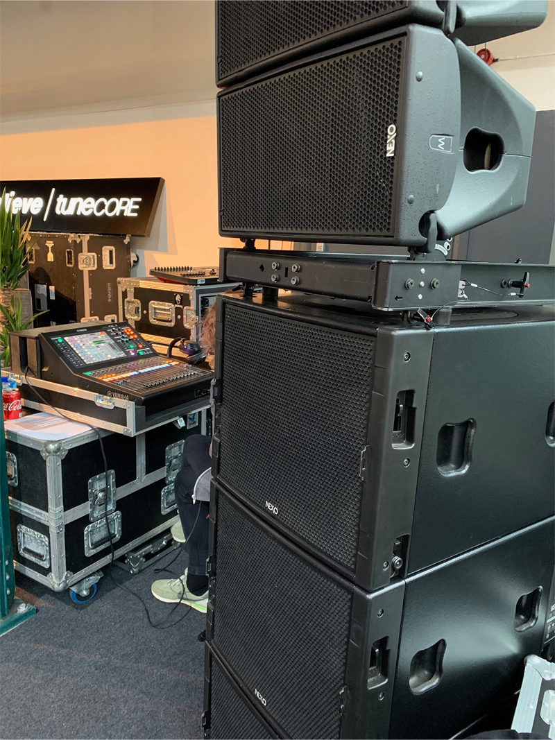 Yamaha zapewniła również stoły mikserskie, system nagłośnieniowy, mini sceny do występów na żywo, scenę Great Gallery i 24 przestrzenie do organizacji zajęć. Do udźwiękowienia sceny sponsorowanej przez wytwórnię Believe, dostarczyliśmy system liniowy NEXO GEO M10, który zapewnił początkującym artystom nagłośnienie.