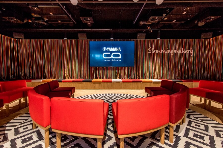 W De Stemmingmakerij (pomieszczeniu do spotkań i prezentacji audio-wizualnych) zainstalowano cztery, mocowane do ścian głośniki Yamaha VXS8. Wystarcza to, żeby wypełnić całą przestrzeń dźwiękiem. System jest zasilany wielokanałowym wzmacniaczem XMV4180 oraz kontrolowany przez matrycę MTX3. Podczas używania mikrofonu środkowe dwa głośniki są automatycznie ściszane, żeby uniknąć zakłóceń.