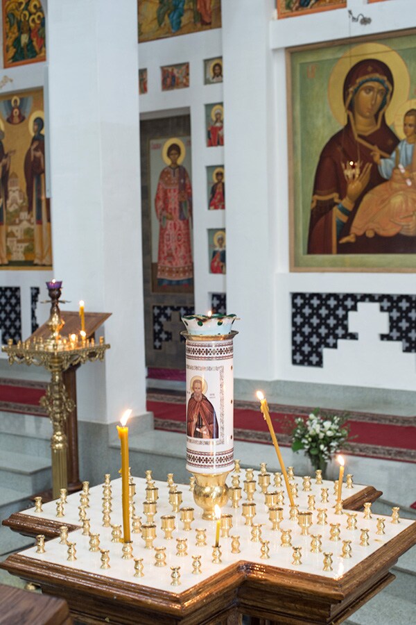 Russian Orthodox services are conducted entirely in melodic chants or singing, to create a sense of calmness and to express the true nature and purpose of the words. The church originally had no sound reinforcement system, but it quickly became obvious that churchgoers were clustering in the centre to hear services properly, distracting them from their worship.