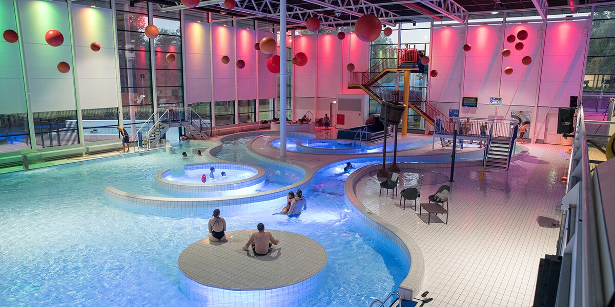 Owned by sports and leisure facility company Spurd, the Spurd-Leeghwaterbad complex has four pools in a 55,000m3 building, plus a large outdoor sunbathing area with two further pools. A 15m long by 1.5m high, 10cm thick glass wall in the side of the sports pool connects it with the foyer and reception area, creating a visual impact for swimmers as they arrive.