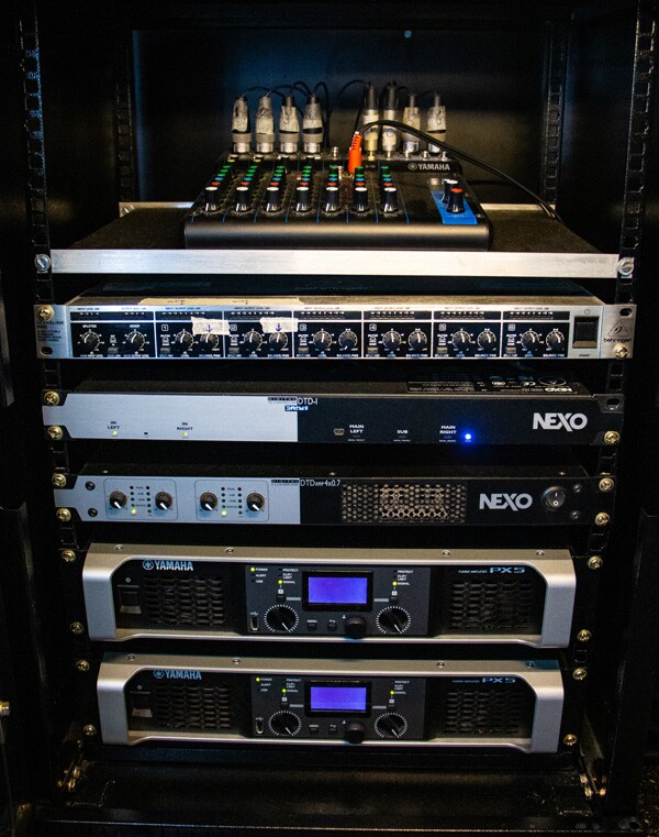 They are complemented by two pairs of Yamaha CXS15 XLF subwoofers, powered by PX5 amplifiers. Packed with features including extended low frequencies, outstanding clarity and best in class 133dB SPL performance, the CXS18 XLF’s lightweight yet rugged design and the PX5’s intelligent processing make them a great solution for high end installations. The system’s inputs are managed by a compact Yamaha MG10 mixer, installed in the control rack with the amplifiers.