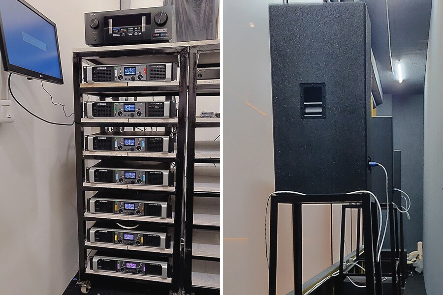 Sala kinowa w Pradhyuman Royal Heights to mieszczący 82 komfortowe fotele mini multipleks, który stał się centrum rozrywki lokalnej społeczności. Dwudrożne kolumny Yamaha R215 oraz subwoofery DXS18XLF o poszerzonym dolnym paśmie zostały zainstalowane jako frontowy system L-C-R. Natomiast sześć par dwudrożnych głośników ściennych VXS8 nadaje efekt przestrzeni a kolejne cztery pary sufitowych Dolby Atmos sprawiają, że brzmienie zyskało dodatkową głębię. Całość jest zasilana przez pięć wzmacniaczy Yamaha PX3 oraz po jednym egzemplarzu modeli PX5 i PX8, które dzięki wszechstronnej technologii przetwarzania sygnału pozwalają osiągnąć pożądane brzmienie.