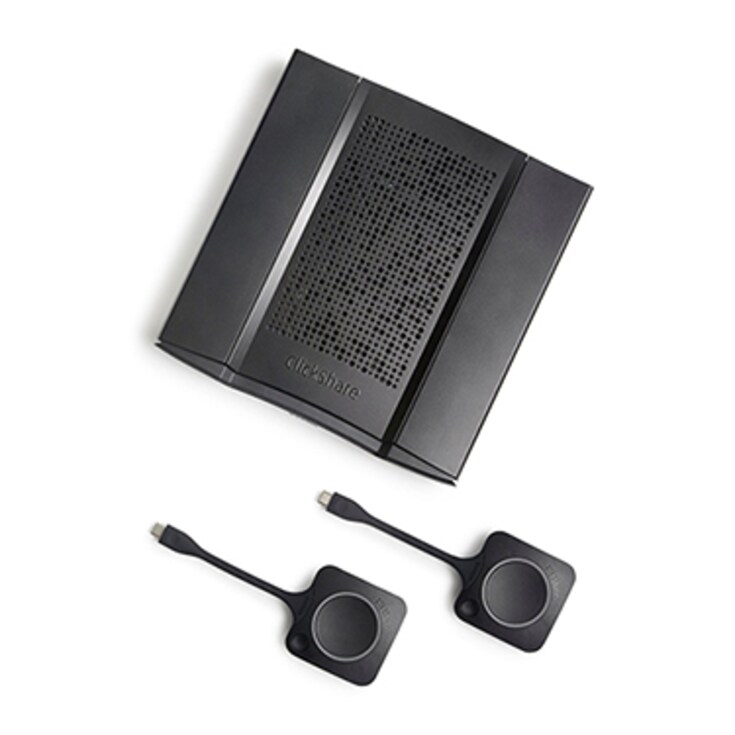 ClickShare is a solution that wirelessly connects your teleconference room monitor and projector to multiple PCs, enabling instant sharing across screens from any PC. You can integrate USB peripherals such as cameras, microphones, and speakers for remote teleconferences, and you can easily set up a remote teleconference with a single button for hybrid meetings with a mix of offices and remote environments. With regard to security, it also has high security that conforms to ISO 27001, and is currently the most used wireless presentation and conference system in the world.