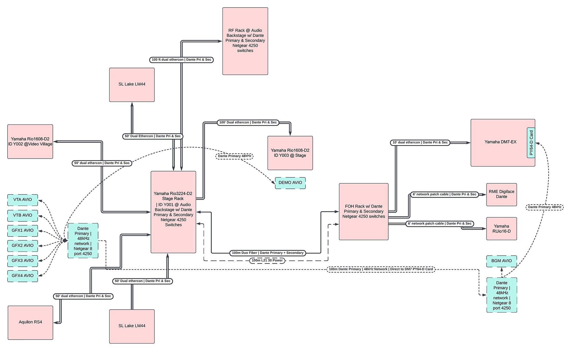 Network Management and Troubleshooting: Managing separate Dante networks running at different sample rates posed a challenge initially. Brian described the process: "There's a whole Dante network running at 96k, but then there's an entirely separate Dante network running at 48k." By using Dante Controller and careful planning, Brian successfully managed these networks with a PY64-D Dante expansion card with SRC, ensuring smooth operation and high-quality audio transmission.