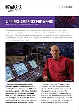 Renowned as the longstanding Front of House engineer for Prince, Lady Gaga and, more recently, Singaporean superstar JJ Lin, Scottie Baldwin has a refreshing philosophy about audio mixing and the modern live engineer’s role. A longtime user of Yamaha digital mixers, when JJ Lin played a UK arena show this year, Scottie took time out to talk about his approach.