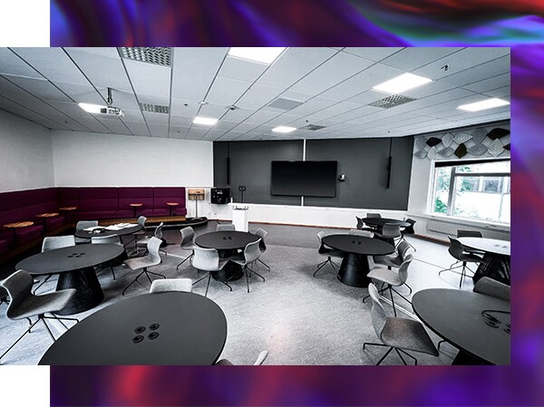 Multi-purpose rooms that occasionally host spontaneous meetings are ideally equipped with a combined ADECIA Ceiling and Tabletop Solution.