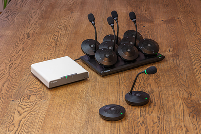 The RM-W series introduces four new wireless microphones; two boundary models (the omnidirectional RM-WOM and cardioid directional RM-WDR) and two gooseneck versions (the RM-WGL with 12-inch gooseneck and RM-WGS with six inch gooseneck). The microphones work with the eight channel RM-WAP-8 wireless access point, which has Dante control and PoE power provided by a single network cable. The ADECIA Wireless Solution uses the Digital Enhanced Cordless Telecommunications (DECT) standard and the 1.9GHz frequency band, meaning less possibility of bandwidth conflict, making communication stable and clear.