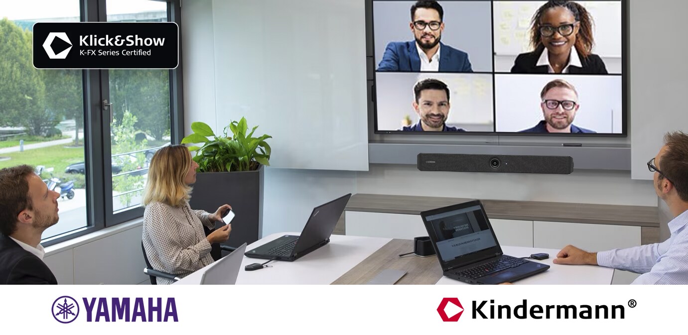 Rellingen, 20.07.2023, Yamaha Music Europe is proud to announce that our new CS-800 and CS-500 video collaboration systems and the ADECIA all-in-one conferencing audio solutions are the first systems worldwide to be certified by Kindermann's new "Klick&Show K-FX" partner programme