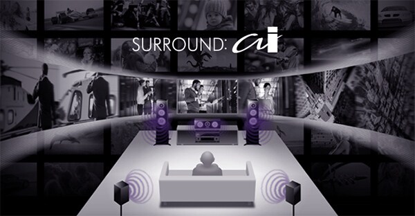 Calibrates sound to your room by analyzing room acoustics and measuring speaker characteristics. This feature also optimizes sound parameters for maximum performance from SURROUND:AI™, Dolby Atmos® and DTS:X®.