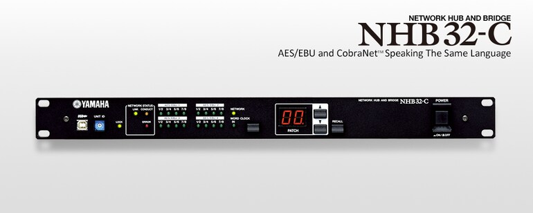 - Up to eight NHB32-C units can be networked, with each unit transferring and receiving four bundles, and 64 channels of digital audio can be received from any ACU16-C or NHB32-C on the network via CobraNet™.
