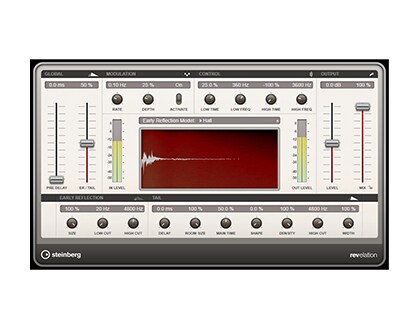 REVelation produces a high-quality algorithmic reverb with early reflections and reverb tail.