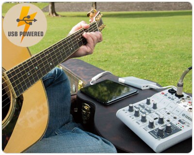 Mikser AG może być zasilany przez USB, bez potrzeby stosowania zewnętrznego zasilacza. Może Może on również być zasilany za pomocą powerbanku do iPada, dając prawdziwe, przenośne warunku do miksu, bądź funkcji interfejsu audio.