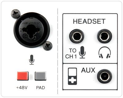 AG jest wyposażony zarówno wejście z zasilaniem phantomn, jak i standardowe złącze słuchawkowe, dając możliwość użycia profesjonalnego mikrofonu pojemnościowego na równi ze zwykłym, komputerowym zestawem słuchawkowym.