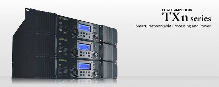 Firma Yamaha już od ponad 30 lat dostarcza najwyższej jakości profesjonalny sprzęt audio do wielu zastosowań. Ostatnie wzmacniacze z serii Tn osiągnęły nowy poziom w zakresie mocy, skuteczności, jakości brzmienia oraz możliwości zasilania o niskiej impedancji. Wzmacniacze z serii TXn to spójne połączenie wiodących technologii Yamaha, niezwykłej mocy, doskonałego przetwarzania sygnałów oraz możliwości sieciowych. Trzy nowe, potężne końcówki mocy zapewniają nie tylko niezwykłą skuteczność i doskonałą jakość brzmienia w 2om, lecz również zaawansowany silnik DSP, a także przyjazny użytkownikowi panel przedni, który minimalizuje lub wręcz całkowicie eliminuje potrzebę posiadania dodatkowych, zewnętrznych korektorów, efektów, czy procesorów głośnikowych. Wszystkie modele wyposażone są w analogowe oraz bezpośrednie wejścia cyfrowe z automatyczną, bezawaryjną możliwością przełączania pomiędzy wejściami cyfrowymi, a analogowymi. Konfiguracja złączy może być dostosowana, według potrzeb, za pomocą opcjonalnych kart Yamaha mini-YGDAI. Dzięki odpowiednim kartom I/O (Wejście/Wyjście), wzmacniacze są w pełni kompatybilne z sieciami audio CobraNet lub EtherSound, jak również z ogromną ilością cyfrowych formatów audio. Wbudowany port Ethernet może być podłączony do komputera z odpowiednim oprogramowaniem do kontroli wzmacniaczy Yamaha, zapewniając wszechstronne możliwości kontroli i monitoringu pojedynczych lub całych grup wzmacniaczy.