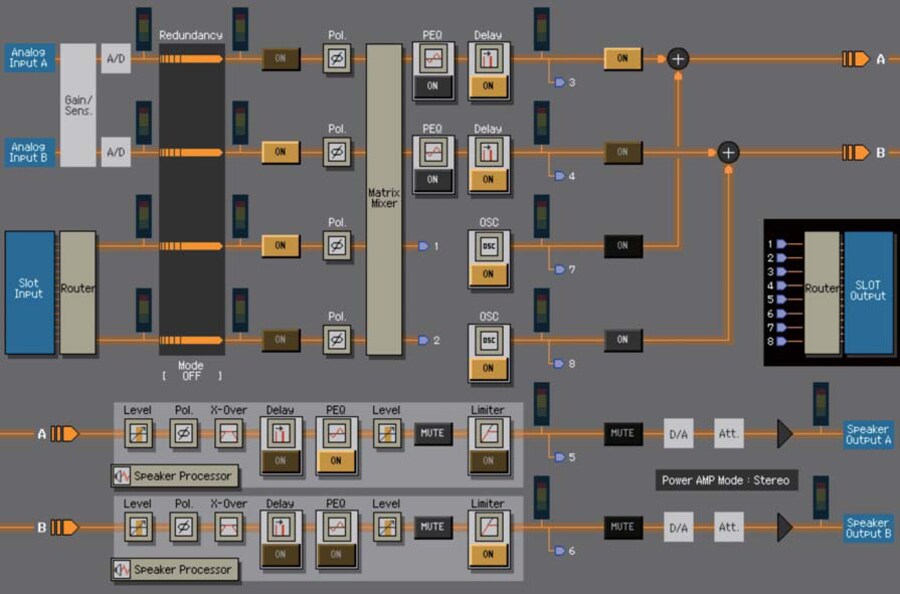 Cyfrowe przetwarzanie sygnałów niezwykłej jakości to już legendarna marka Yamaha. Wszystkie modele TXn łączą 24-bitowy silnik ADDA 96-kHz DSP, który zapewnia niezwykły zakres możliwości kontroli i przetwarzania. Dodatkowo, oprócz standardowej kontroli oraz monitoringu, końcówki mocy zostały wyposażone w wbudowane silniki DSP, zapewniając niezwykle szerokie możliwości przetwarzania sygnałów, dzięki czemu w większości zastosowań nie musisz korzystać z dodatkowych, zewnętrznych procesorów. Wzmacniacze TXn charakteryzują się niezależnym przetwarzaniem sygnałów wyjściowych i wejściowych. Wbudowane funkcje i parametry DSP mogą być obsługiwane bezpośrednio z interfejsu na przednim panelu wzmacniacza lub poprzez oprogramowanie Yamaha NetworkAmp Manager II, zainstalowane na komputerze, podłączonym do końcówki mocy, za pomocą Ethernet.