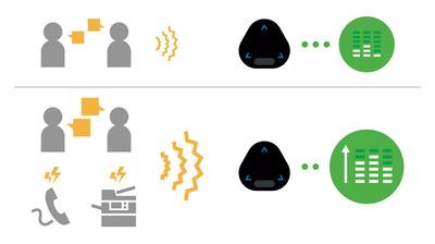 Problem: When using a speakerphone in open workspaces, speaker output can sometimes be too quiet or too loud when ambient background noise changes, causing missed information or an inconvenience to the surrounding workers. In some cases, there is also a risk of private information being heard.
