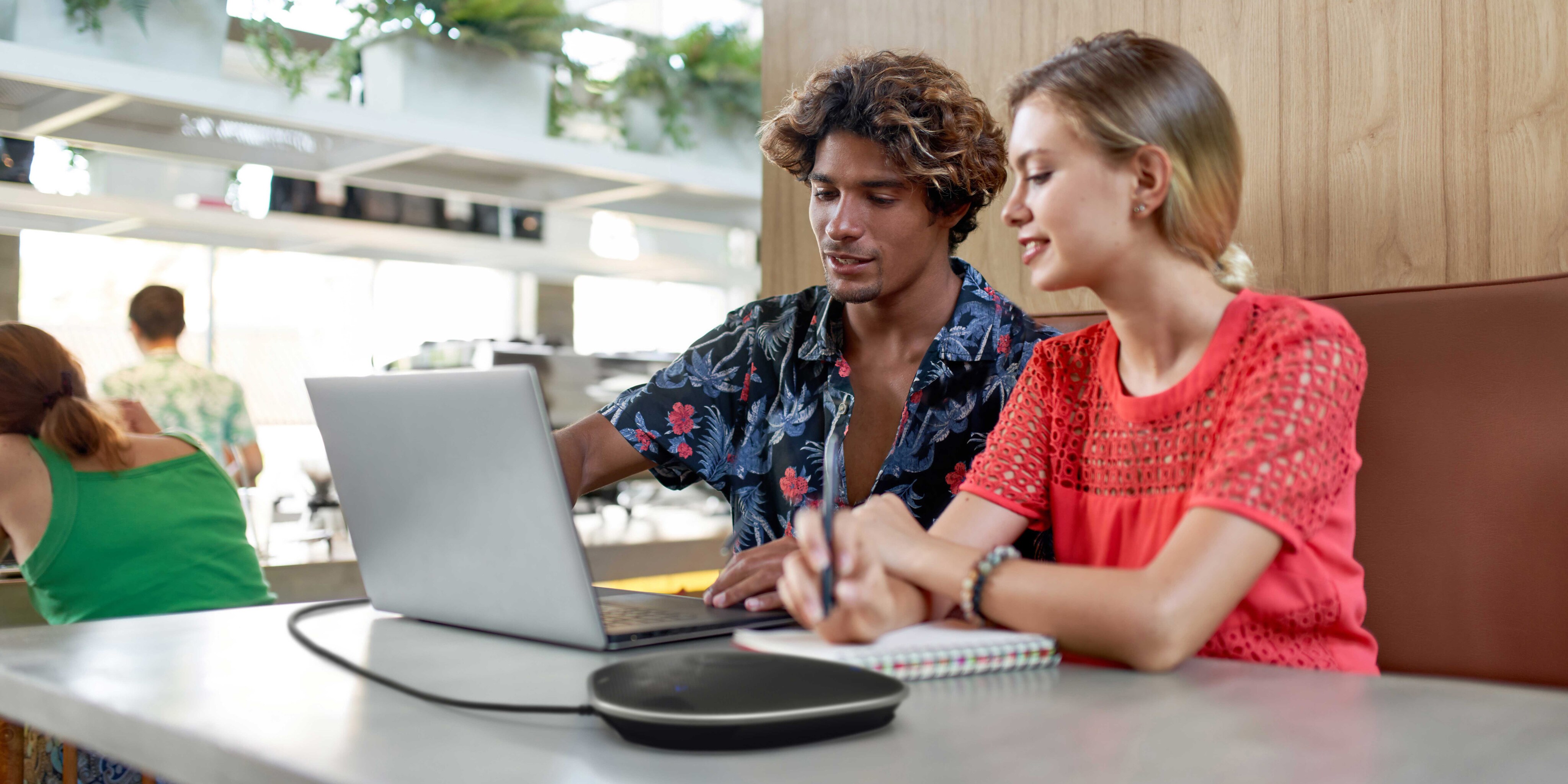 Problem: Open workspaces can be noisy with sounds from colleague chatter, office equipment and nearby meetings. When having remote conference sessions, your conversation can be disrupted by these noises and far-end participants will have difficulty hearing you clearly.