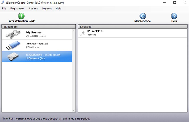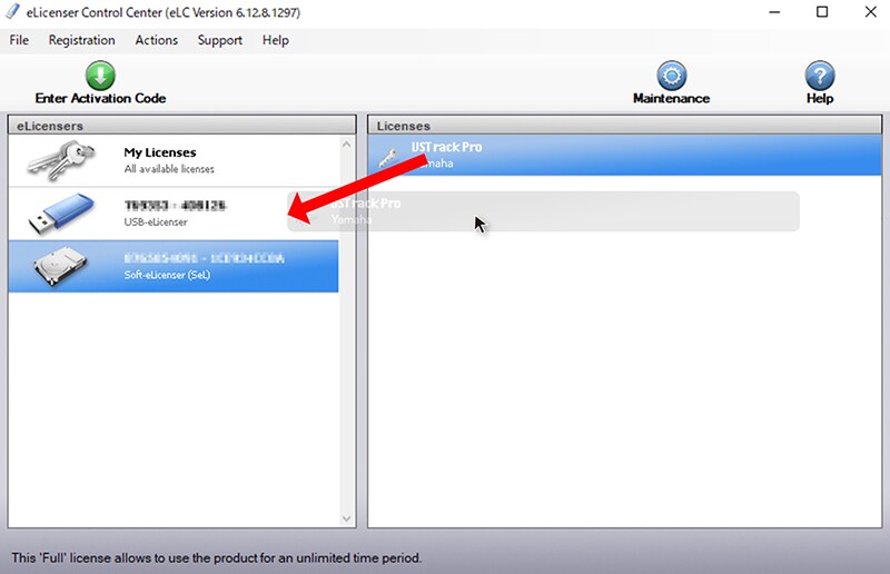 8. When you return to the eLicenser Control Center screen, select USB-eLicenser and check whether VST Rack Pro is displayed in the license field on the right side.