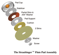 Poduszki Straubinger, wokonane z plastikowej, solidnej podstawy pokrytej wytrzymałą syntetyczną skórą, to podstawowy element wysokiej jakości ręcznie robionych fletów. W porównaniu do tradycyjnych filcowych poduszek, które wymagają częstej regulacji, poduszki Straubinger są bardziej tolerancyjne na zmiany środowiska i pozostają w dobrej kondycji przez dłuższy Ręcznie robione flety firmy Yamaha wyposażone w poduszki Straubinger umożliwiają grę z czystą artykulacją i bardziej dojrzałym, zniuansowanym brzmieniem.