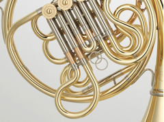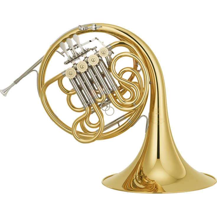 Custom Series Full Double Horn, Key: F/Bb, Valves: 4 rotary valves, Bell size: M, Bell type: Detachable, Bore: 12.1mm (0.476"), Valve casings: Nickel silver, Valve Rotors: Solid (1st, 2nd, and 3rd) Hollow (4th), Lever action: String