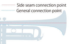 Side seaming is the process of placing the connection point on the lateral valve casing side in contrast to the conventional method of placing the connection point on the lower side of the bell. Side seam trumpets are characterized by a more open vibration.