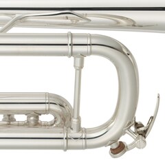 The Xeno Artist Model trumpet water key contributes to musical resonance in a significant way. The weight distribution of the water key arm and saddle improve playability and response while enhancing high resister accessibility.