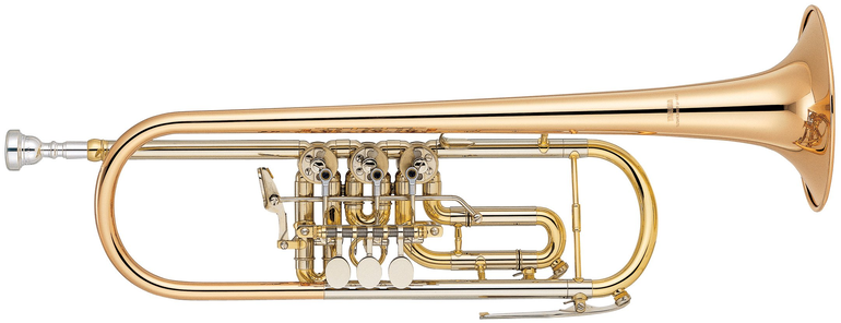 Intermediate Series, Medium-weight Bb rotary trumpet, Gold-brass bell, Bell: 134.4mm (5-1/4") , 11mm(0.433"), 3rd valve slide trigger, Finish: Clear lacquer, Mouthpiece: 15E4