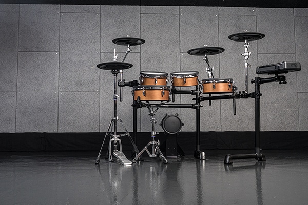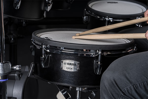 The pads feature wooden birch drum shells which are made and painted at Yamaha acoustic drum factories. The badges, lugs, and hoops are also standard acoustic drum parts. Taken as a whole, these shells offer the presence and beauty of authentic acoustic drums, and are incredibly appealing to drummers.