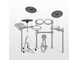 Zestaw padów do perkusji elektronicznej wyposażony w pady DTX – pad talerza crash, pad talerza ride oraz pad hi-hat ze statywem