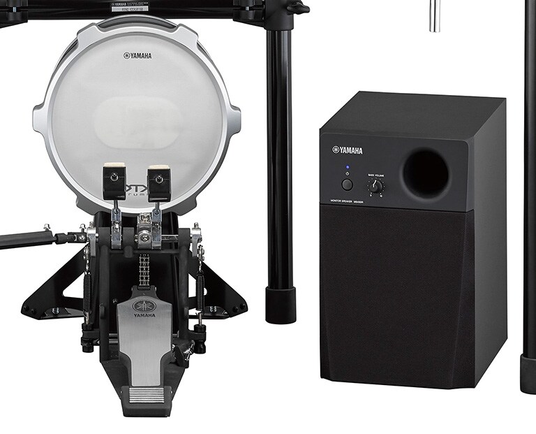 The 16 cm cone-shaped 20 W subwoofer speaker units reproduce accurate, low-range sounds of the bass drum and floor tom, delivering a powerful sound and feel that is perfect for realistic-sounding performances.