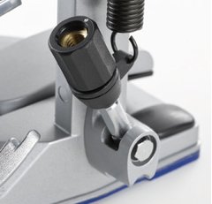 Moving the spring adjustment knob upward greatly simplifies the traditionally troublesome tension adjustment process. The knob is locked at a 90-degree angle that prevents it from coming loose on its own.