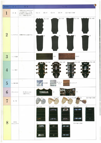 Working from the top model in the Pacifica series (Yamaha’s standard bolt-on guitars), this flexible semi-order system allowed players to specify detailed specs in terms of body material, fingerboard material, inlays, neck shape, frets, and color.