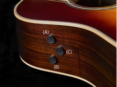 Obudowa na baterie została zintegrowana z wejściem na przewód. Taka konstrukcja wymaga mniejszej ilości otworów w korpusie gitary, w ten sposób zmniejszając straty akustyczne dźwięku. Podłącz gitarę do wzmacniacza lub przedwzmacniacza aby używać jej, jako gitary elektro-akustycznej.