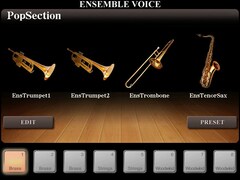 Ensemble Voice is an amazing new feature that reproduces true "divisi" playing in a section. In the past, a Voice like Brass Quartet would use a sample of four players, which sounded great. However, if you played two notes you'd get eight players, which could sound great but isn't the most realistic. Tyros5 Ensemble Voices always get the same number of players because Tyros5 has the musical knowledge of a professional music arranger. Play two notes with a Brass Quartet Ensemble Voice, and Tyros5 will send the trumpets to the top notes and the trombones to the lower notes; it's an incredibly realistic sound.