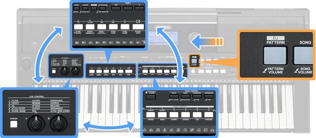 Funkcja PATTERN oferuje potężne możliwości zapętlania brzmień oraz rytmów poprzez wciskanie odpowiednich przycisków. Poczuj się jak DJ i twórz własne brzmienia, korzystając z funkcjonalnych pokręteł.