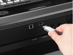 Umieść pamięć zewnętrzną flash USB w złączu USB TO DEVICE, aby korzystać z możliwości wczytywania oraz zapisywania własnych ustawień, jak również innych danych z i do podłączonych urządzeń, np. komputera.