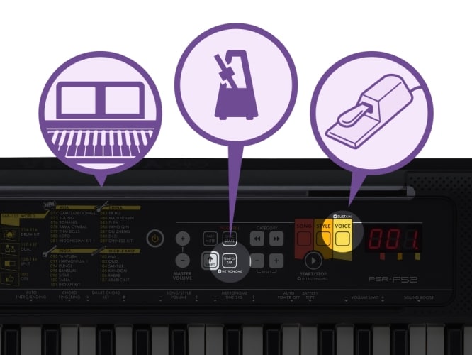 PSR-F52 to idealny keyboard dla osób, które chcą nauczyć się grać. Posiada wszystkie niezbędne funkcje, aby rozpocząć przygodę z muzyką. Czy może być lepszy sposób na spróbowanie swoich sił w muzyce niż keyboard wyprodukowany przez światowej sławy producenta instrumentów Yamaha? PSR-F52 oferuje solidne podłoże dla każdego, kto chce rozpocząć grę na keyboardzie.