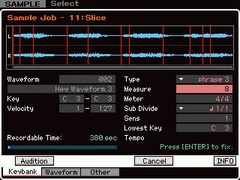 MOTIF XF posiada 128MB wewnętrznej pamięci SD-RAM. Oznacza to, że możesz próbkować zewnętrzne audio, bez konieczności instalacji oddzielnie sprzedawanych pamięci. Korzystając z funkcji próbkowania, możesz wczytywać biblioteki brzmień, importować pliki WAV lub dodawać wokale, gitary i inne akustyczne instrumenty do swoich sekwencji MOTIF. Możesz również podłączyć mikrofon do wejścia A/D i próbkować wokale. Dodatkowo, jeśli wybierzesz funkcję slice w trakcie próbkowania, nawet po zmianie tempa utworów oraz wzorców, nagrane audio będzie podążało za uderzeniami w idealnej synchronizacji. Możesz przetwarzać swoje nagrane próbki, aby uzyskać idealne brzmienie, wykorzystując interfejs edycji użytkownika.