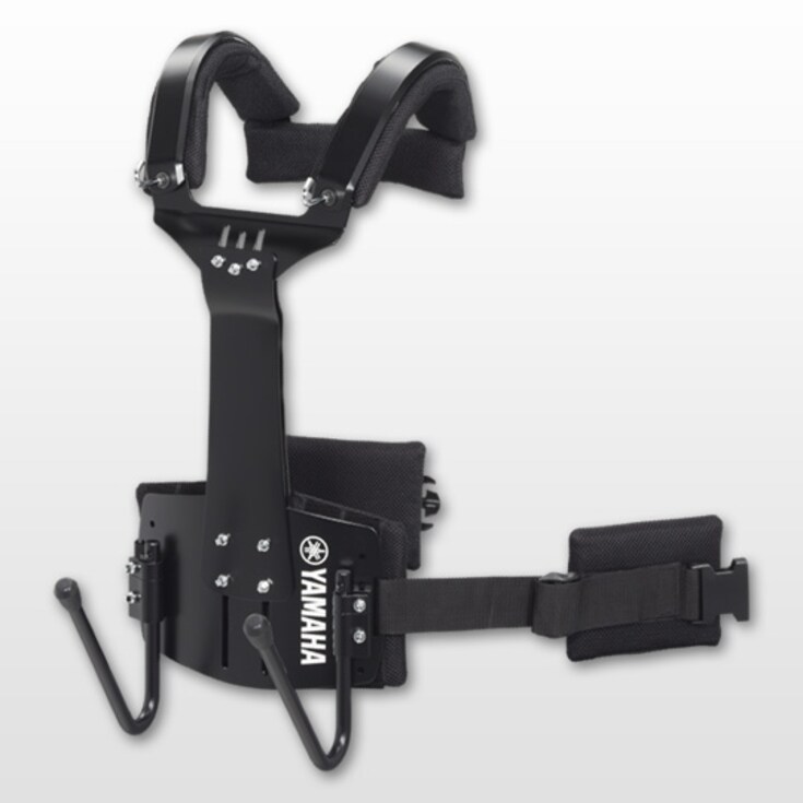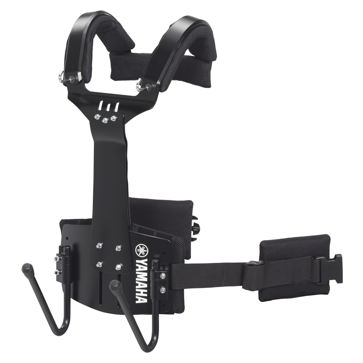 Adjustment mechanisms provided for the belly plate, chest plate, and arm attachment sections make it easy to achieve an optimum fit for users with a wide range of body shapes, while also allowing easy adjustment of instrument height to suit personal preference and maximize playability.
