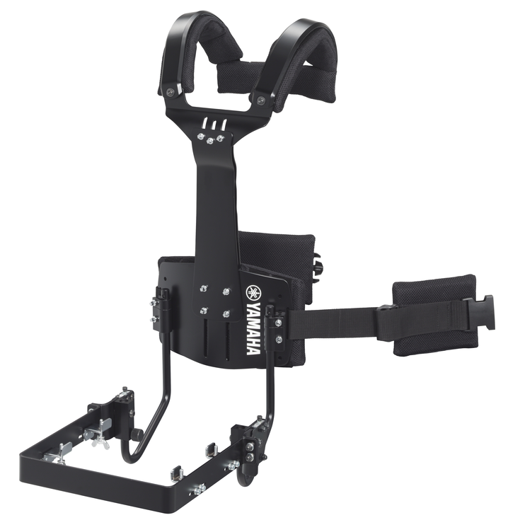 Adjustment mechanisms provided for the belly plate, chest plate, and arm attachment sections make it easy to achieve an optimum fit for users with a wide range of body shapes, while also allowing easy adjustment of instrument height to suit personal preference and maximize playability.