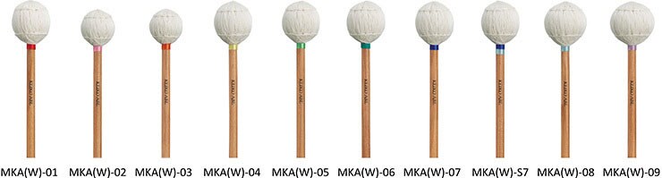 [MKA(W)-02/03] MKA(W)-02 and MKA(W)-03 utilize short shafts for fast, intricate mallet work. Hard to tell by looking, but the added weight in the mallet heads offers the percussionist greater possibilities in playing.