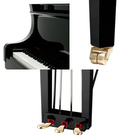 The CFX concert grand piano, and the CX Series - Yamaha’s core grand piano models - have been designed with entirely different pianists and situations in mind. However, in each and every piano that Yamaha makes, the goal of creating a truly modern piano design remains the same. This is evident in our efforts with the CX Series to remove any extraneous design elements, and to refine and reconstruct the connection and balance in areas such as the shape of the side boards, the feet and legs, and the legs and pedal box. While one of the important characteristics of the CX Series lies in the elimination of surplus ornamentation from the case arms, this design philosophy has been applied throughout the series in areas such as the pedal box and the ends of the legs. Although conventional pianos employ older architectural styles, the CX Series feautures no such elements, and has instead been refashioned in a modern style. This follows the new design trend that the CFX set for Yamaha pianos.